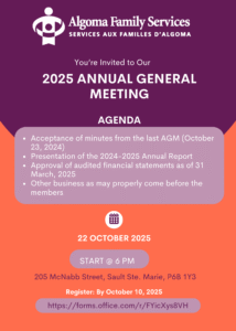 Téléphone: 1 800 461-2237 Télécopieur: 705 942-9273 Courriel: afs@algomafamilyservices.ca